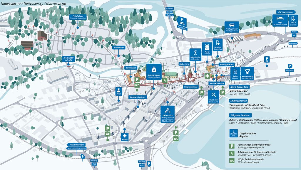 Zoomed-in map of the finish area in Mora