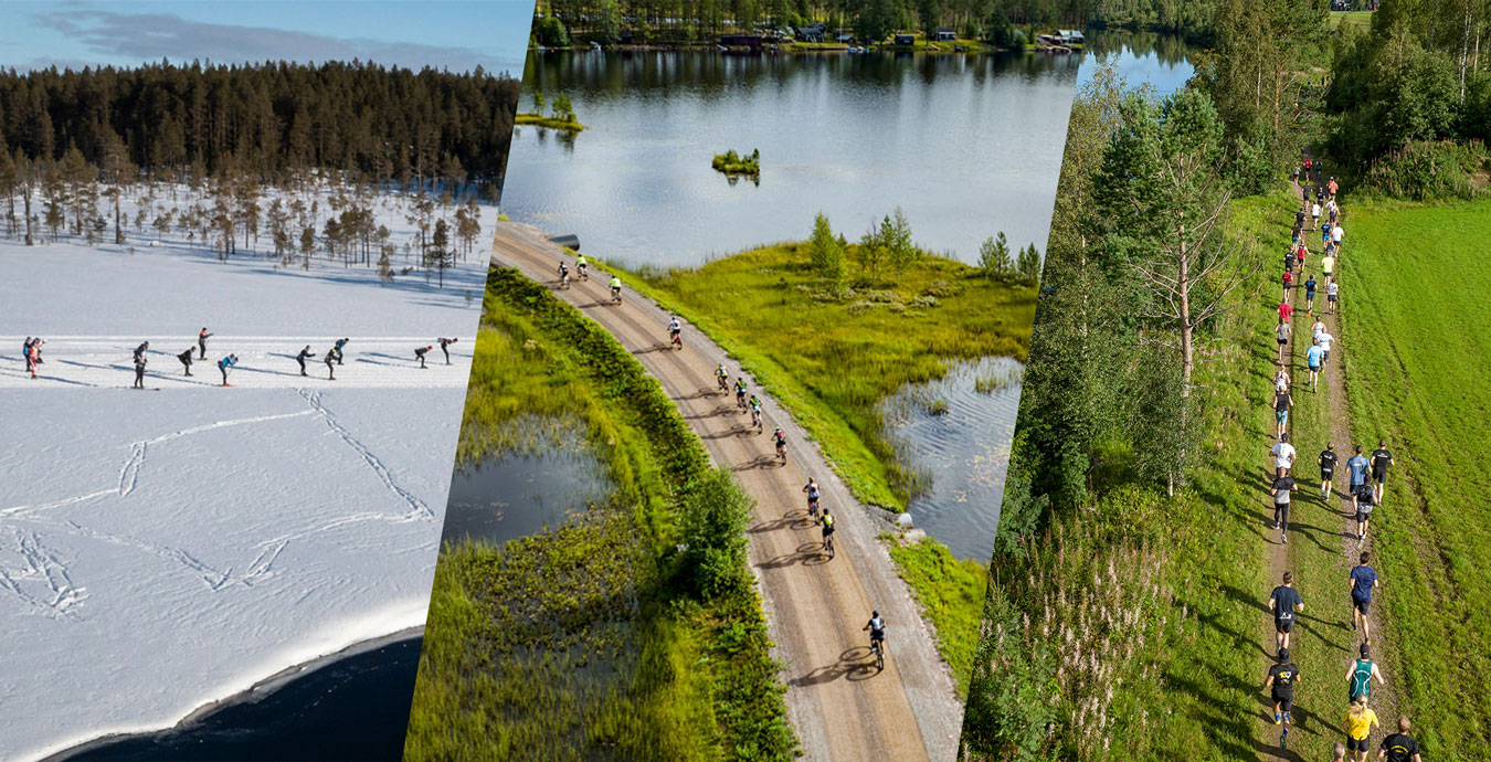 Vasaloppstrippeln consists of a ski race, a cycling race and a running race.