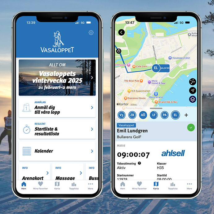 I Vasaloppsappen hittar du kompletta startlistor för respektive arrangemang. Där kan du få aktuella push-notiser med mellantider vid alla Vasaloppskontroller som passeras av utvalda deltagare. Du får också en uppskattad tid för när deltagarna beräknas anlända till nästa kontroll, och när de går i mål. Följer du flera deltagare i samma lopp kan du dessutom jämföra deltagarnas tider.